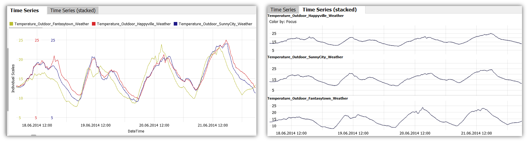 - The tab Time Series (stacked) shows them side by side (limited to 5 variables at a time).
