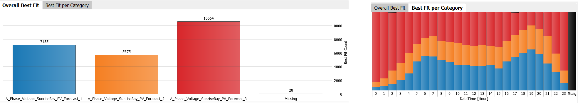 - A selection or a bar in the "Overall Best Fit" view selects the data records where the selected forecast came closest to the reference.