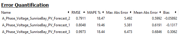 - Quantitative Forecast Overview: A list of error metrics for each forecast, considering all time stamps in Focus