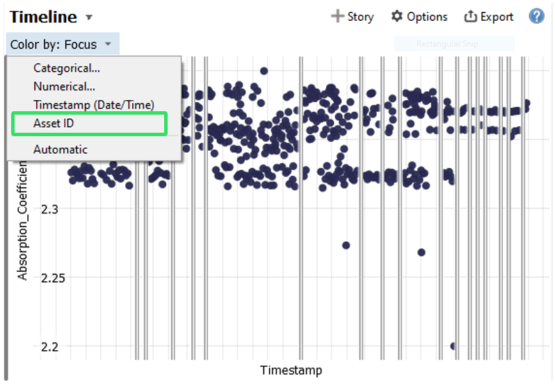 - Distribution axes pre-set to distinguish assets: all distribution views will start with the asset ID as the selected value for the x-axis.