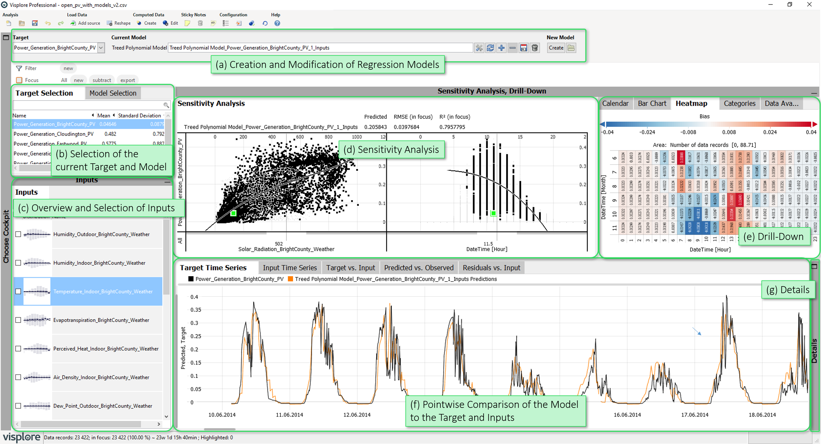 - Selection of the current Target and Model: Allows to select the current target variable, as well as the current regression model (if multiple models have been created).