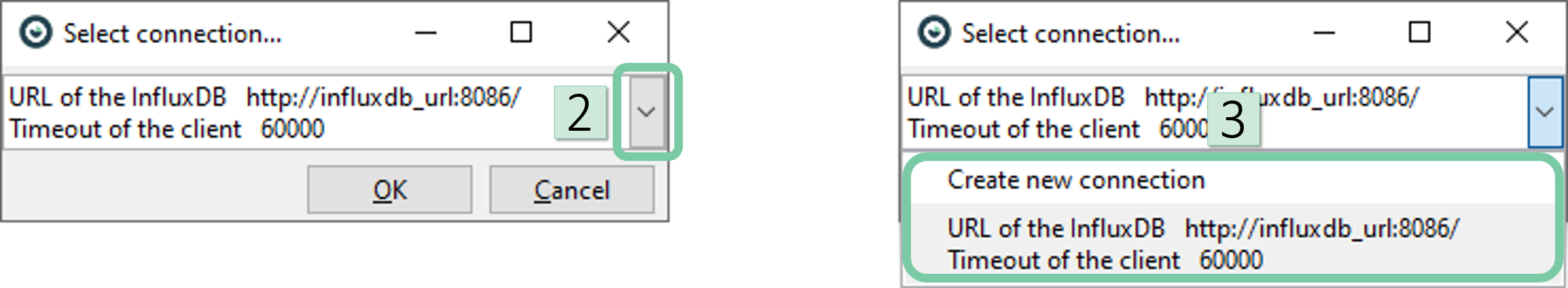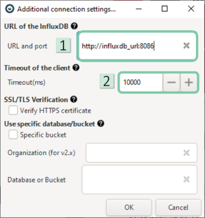 : Note that 8086 is the most common port. - 2. Enter the duration in milliseconds that the query has to be aborted and an error is returned. This is set to 10000 by default.
