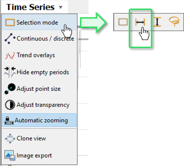 Click the view title "Time Series", then "Selection mode". Then, click on the horizontal interval icon (second from left):