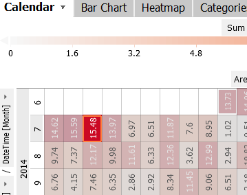 In the previous example, the calendar showed significant differences in daily sums.