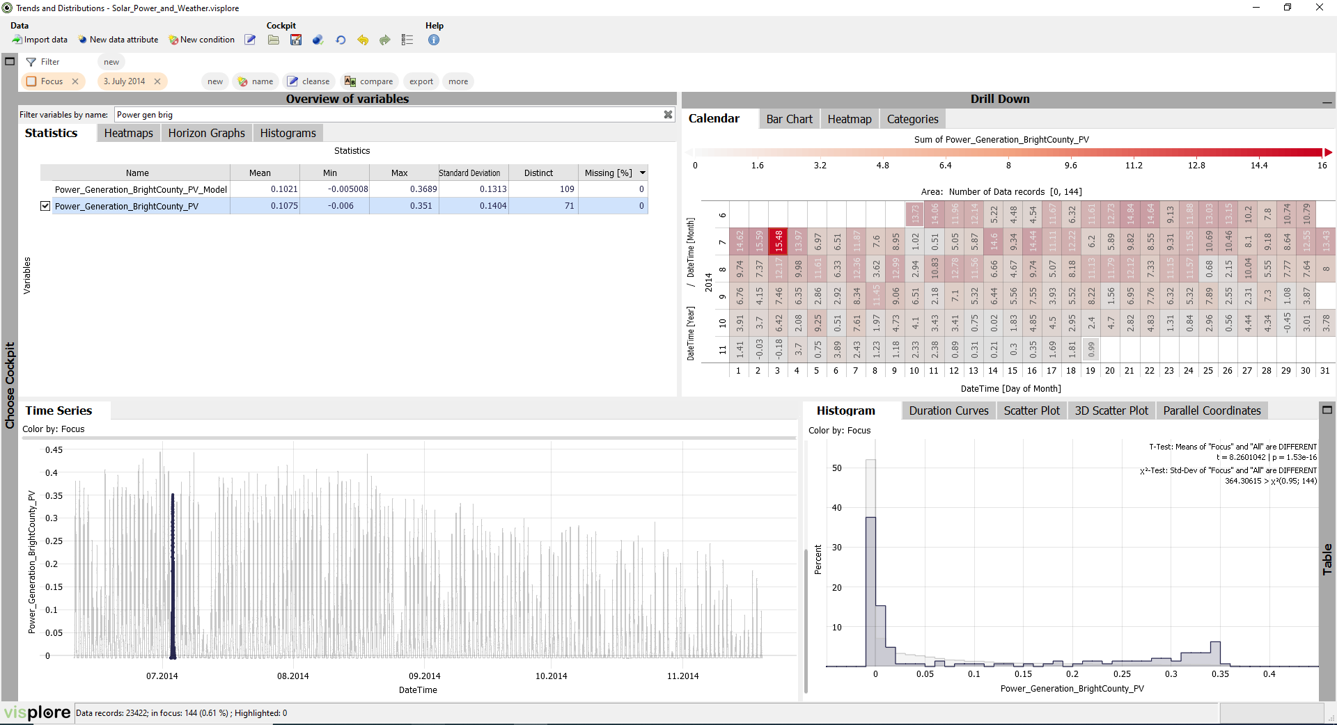 If not the case yet, load the 'Solar Power' demo dataset and start the 'Trends and Distributions' Cockpit, as described in the beginning of the first step by step guide.