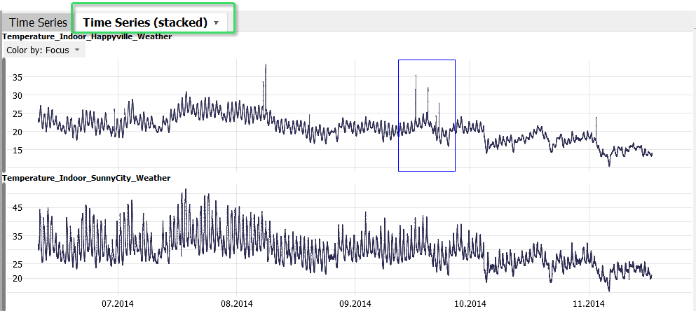 Both selected time series are distinguished in the "Time Series" view by different colors. The coloring is arbitrary at first.