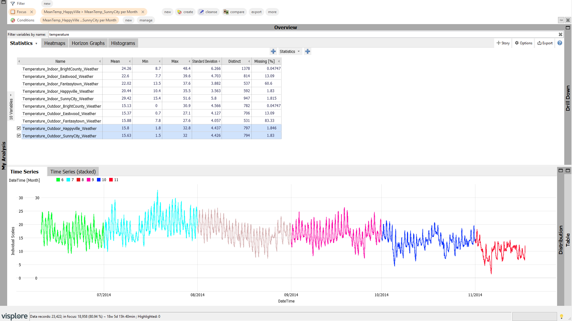 1. Select the time series "Temperature_Outdoor_BrightCounty_Weather" in the "Statistics" view by clicking on its name.